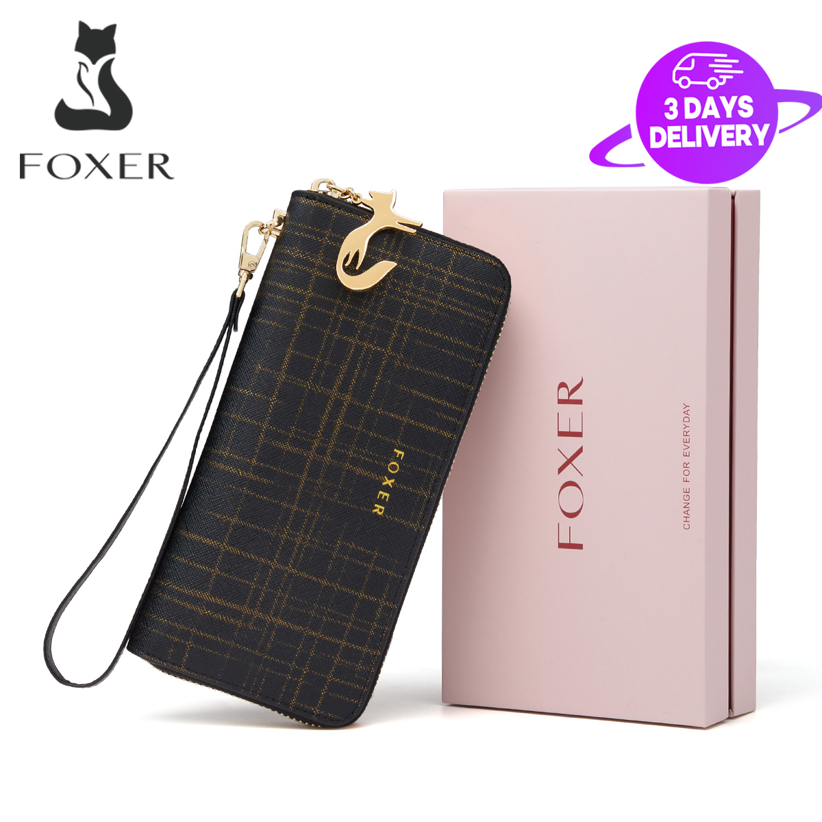 FOXER Women Cow Leather Long Wallet Wallet Clutch Wallet with Wristlet Card Holder Coin Purse Cellphone Bag Female Clutch Bags