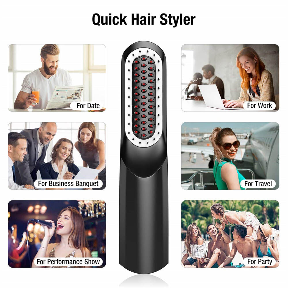 --PORTABLE CORDLESS STRAIGHT HAIR COMB, CONVENIENT TO CARRY: No need to connect to the socket, don't worry about being caught by the wire. No matter where you are, you can use our hot brush to scrape your beard straight and smooth. Suitable for travel, home, office etc.