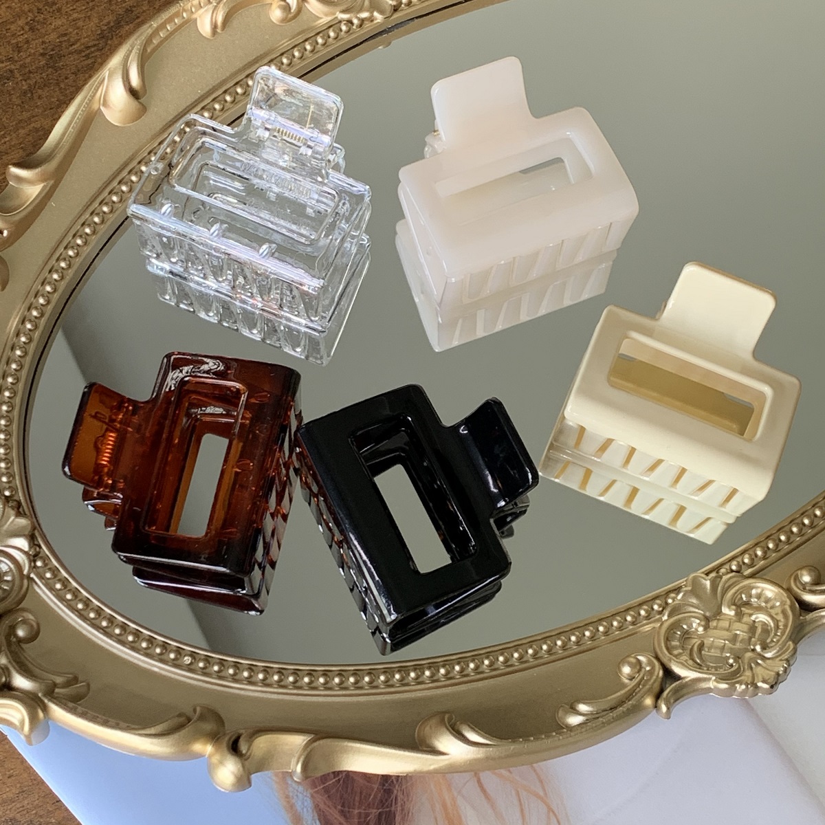 [SG Seller | Light & Tight] 5cm Medium Size Korean Vintage Amber Acrylic Hair Claw Grip Clip, texture hollow ins high-quality hairpin top clip for women