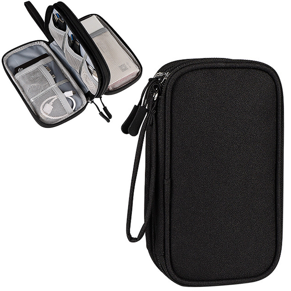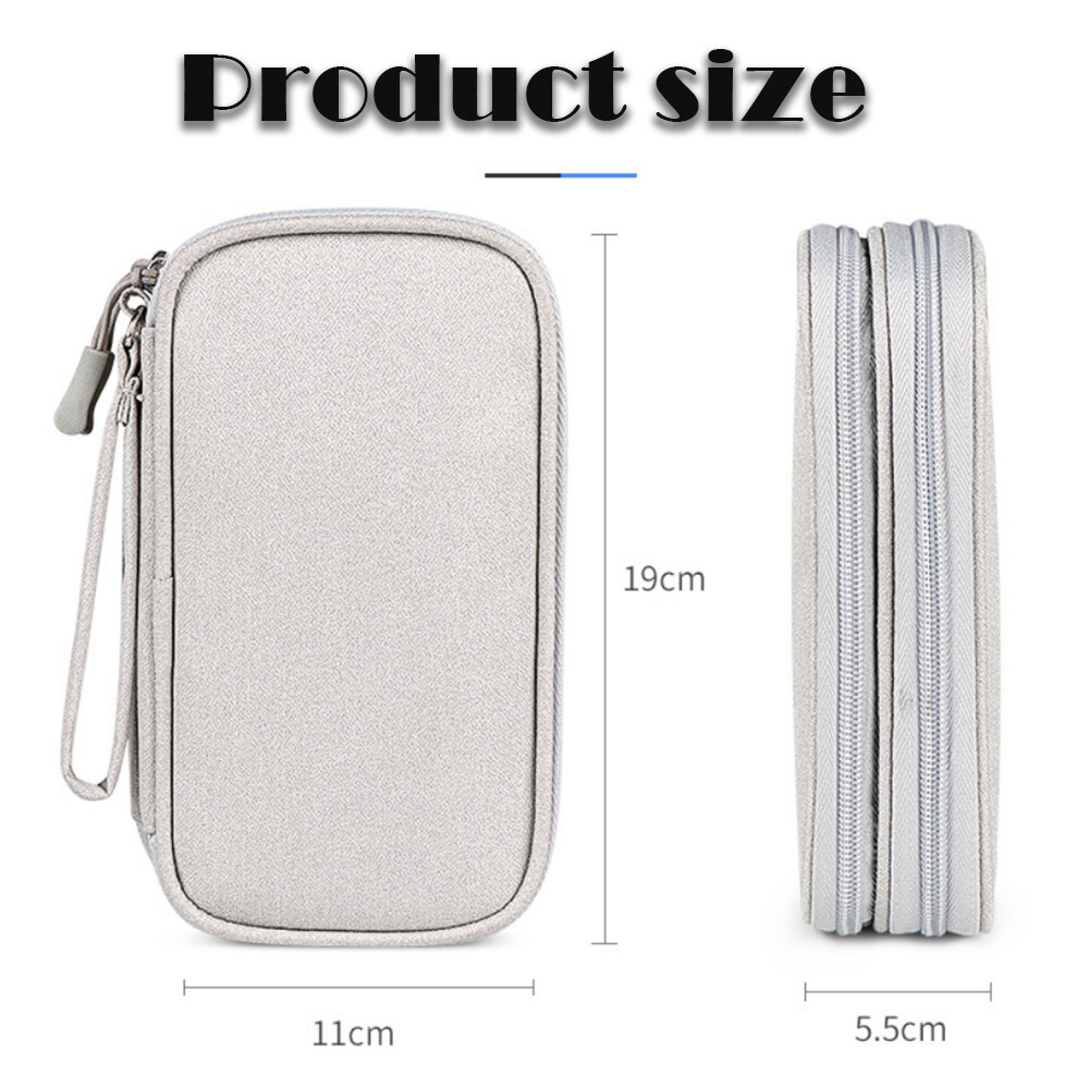 Lune Electronic Organizer Bag Power Bank Pouch 2 layers Large Capacity Storage Bag for Mobile power, Electronic Accessories USB Cable Charger Traveling Storage Bags
