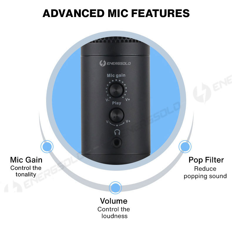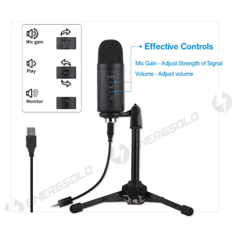 【SG ReadyStock】Energsolo Condenser Professional USB Microphone with Tripod for PC Mac Laptop (Designed in SG) Studio Mic Voice Recording Computer Podcast Live Streaming Wired Zoom Teleconference Singi