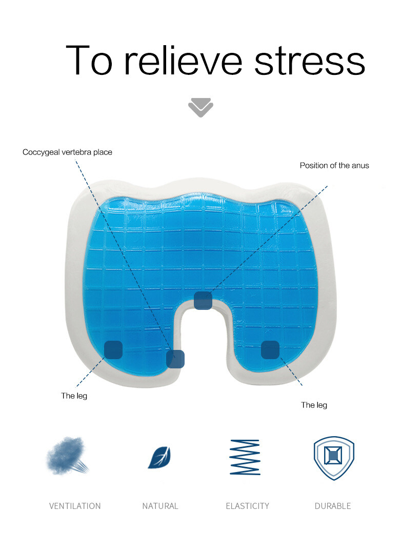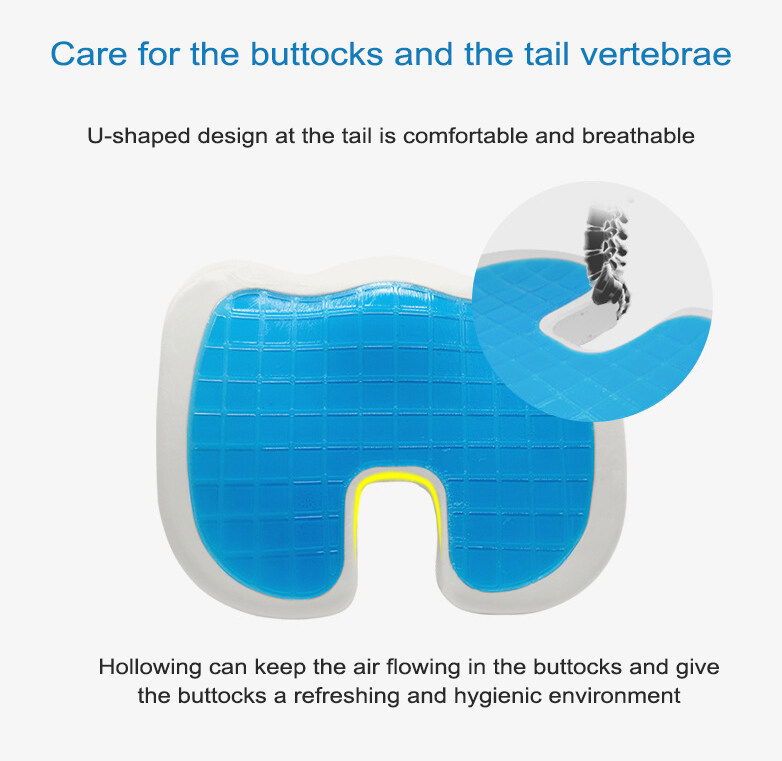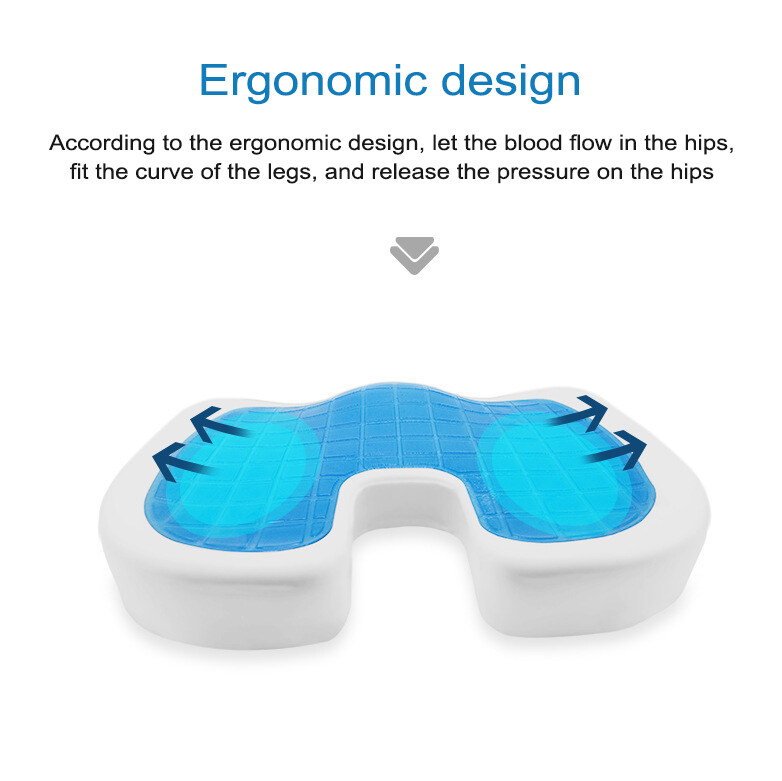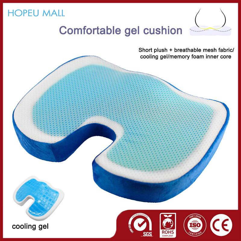 This Chair Cushion is designed for your needs. Memory foam cushion which can increase your comfort when sitting. Cooling gel makes you more comfortable Product Features: - High Quality Fabric, soft and comfortable, safe and not toxic. - Memory Foam has a very high tensile strength and is extremely durable - Gel cushion can disperse heat, so that you can be cool and comfortable in summer. - Features a specially-positioned U-shaped cut-out that gently suspends your tailbone to relieve pressure. - Unique shape will relieve pressure on your back and hips while providing a comfortable place to sit for long periods. - Ladies use U terminal backwards, men use U-end forward. - The cover is machine washable and can be removed using the zipper for easy cleaning. More Reasons Why You Need This Product: * U-shaped Empty Slot - The back of the spine away from the oppression of seat, alleviate the pressure of the tailbone. * Ergonomic Coccyx Design - Relieves painful pressure on your tailbone, Encourages a good spine position. * Natural Cervical Curve - Natural groove curve design, to promote blood circulation of legs. * High and Low Design - Contoured molded seat cushion that evenly distributes body weight.