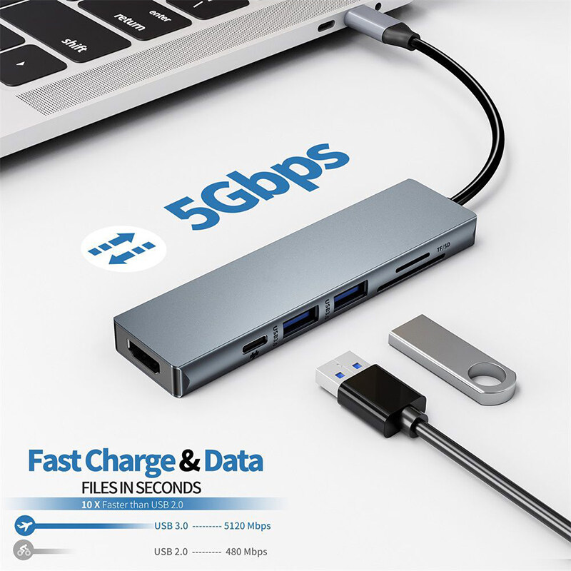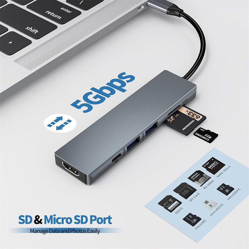 READ USB 3.0 Type C Hub 6 IN 1 Multi Splitter Adapter With TF SD Reader Slot For Macbook Pro 13 15 Air PC Computer Accessories