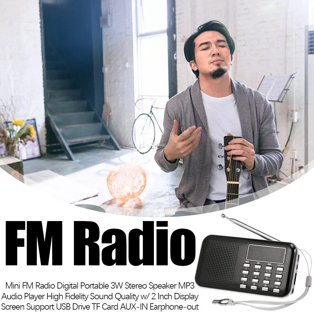 Y-896 Mini FM Radio Digital Portable 3W Stereo Speaker MP3 Audio Player High Fidelity Sound Quality w/ 2 Inch Display Screen Support USB Drive TF Card AUX-IN Earphone-out outdoor universal Super batt