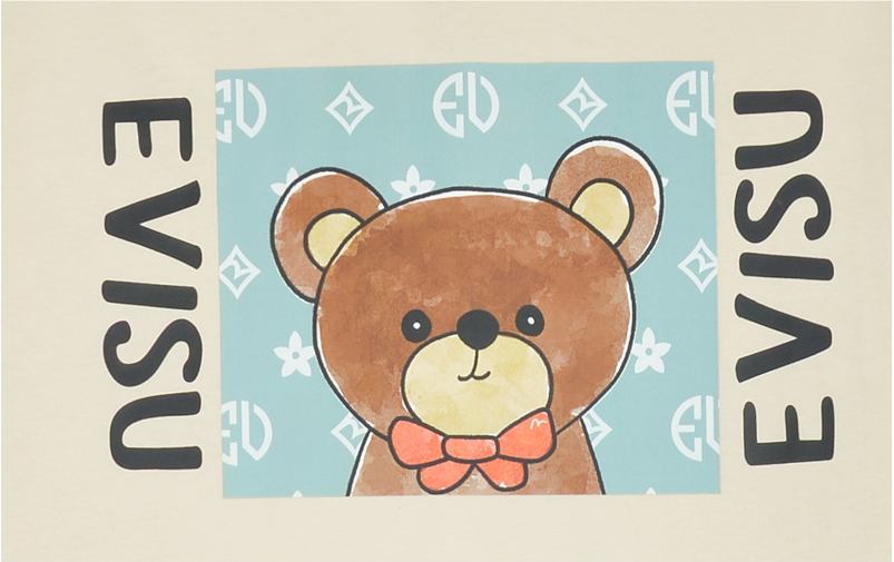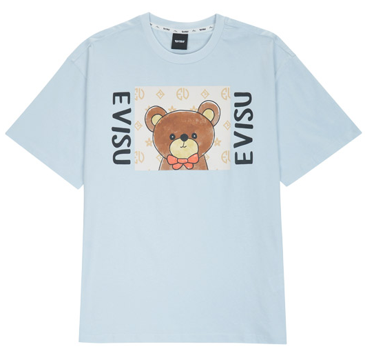 [EVISU KOREA] Overfit Digital Print Teddy Bear Short-sleeve T-shirt Casual Men Women Tee Couple Tops Cotton Street Style Korean Fashion