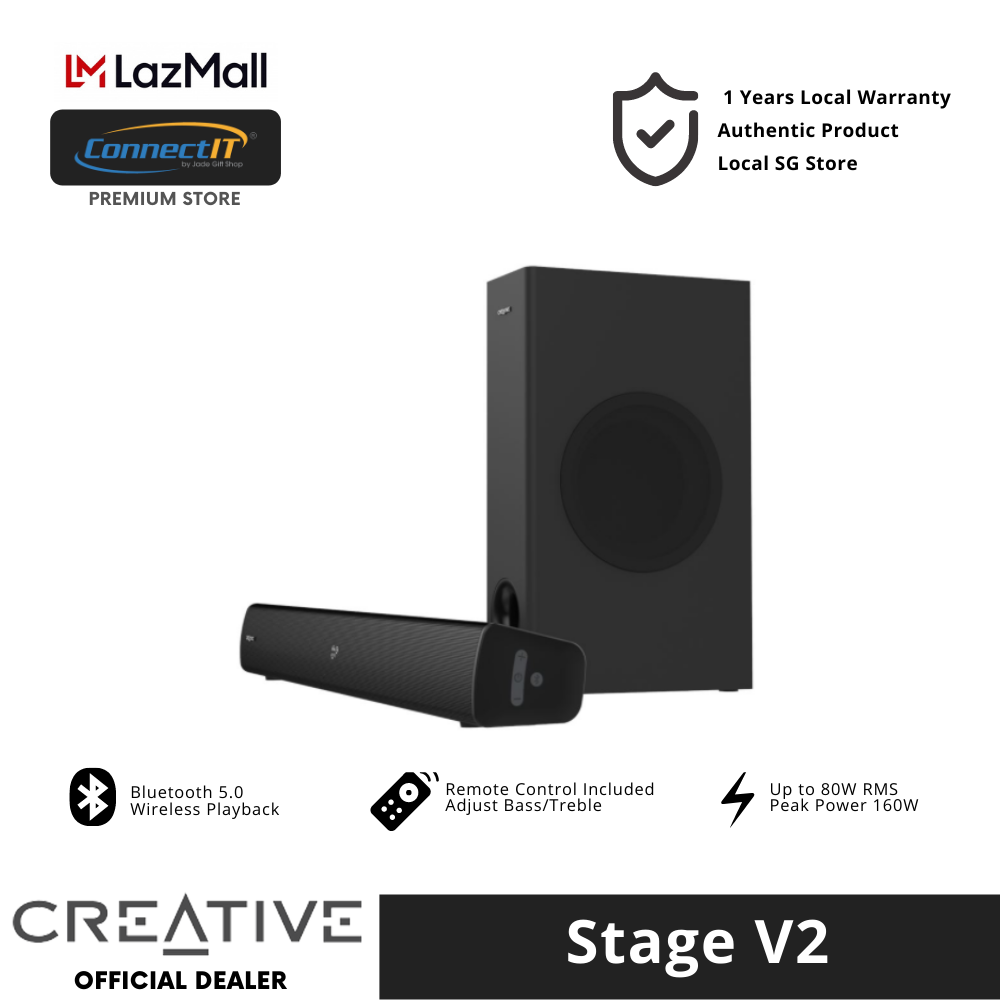 Creative Stage V2 High Performance Wireless Bluetooth 2.1 Soundbar with Subwoofer for TV, Desktops (1 Year Local Warranty)