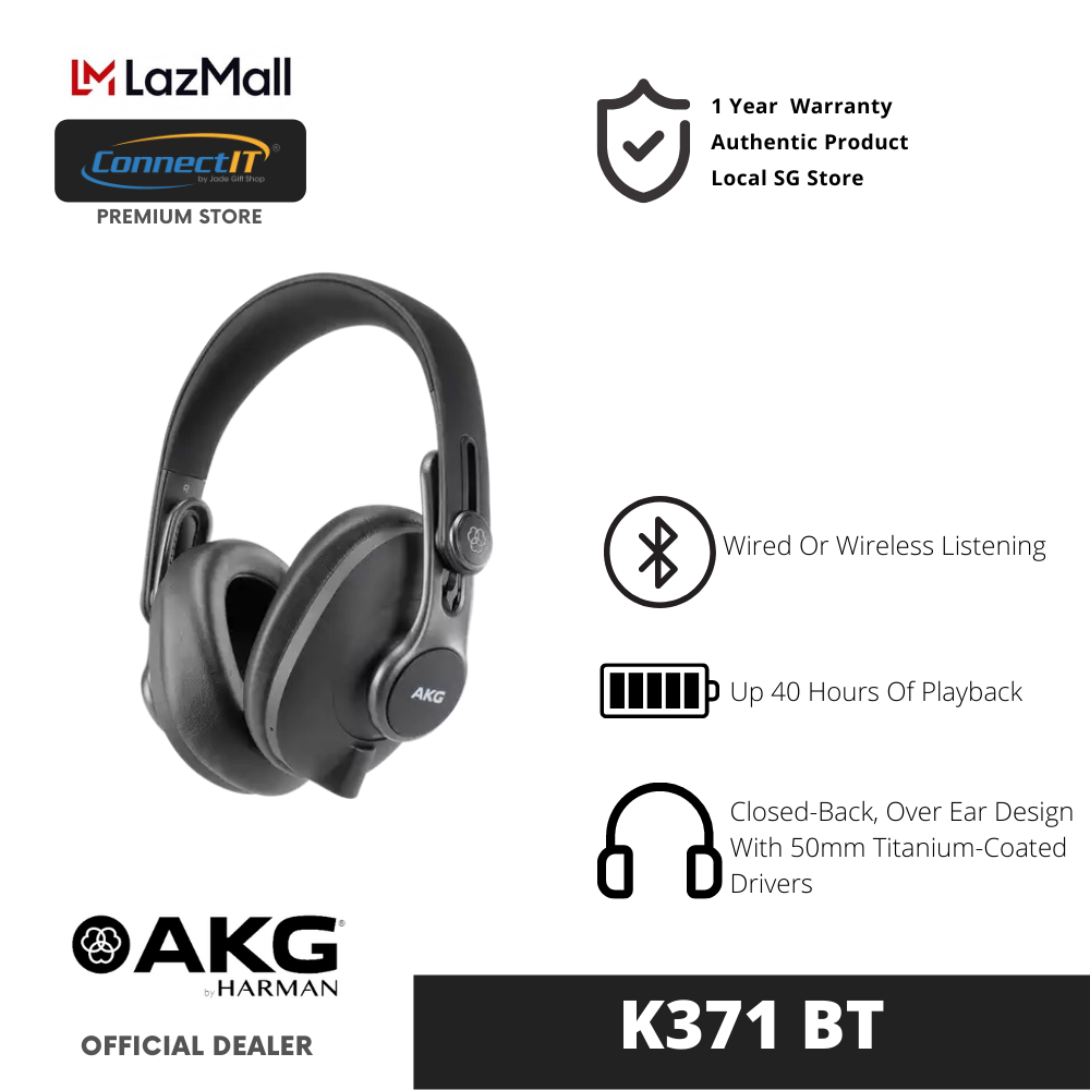 AKG K371 BT Wired/Wireless Closed-Back, Over-Ear, Foldable Dynamic Headphone With Up To 40 Hours of Listening Playback Via Bluetooth 5.0 (1 Year Local Warranty)