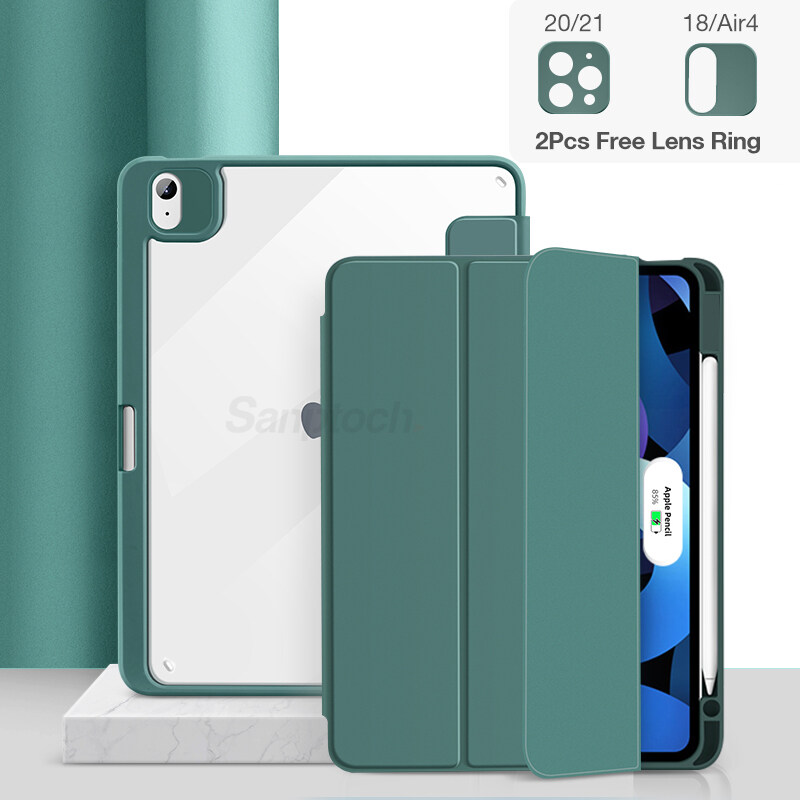 Sanptoch Hybrid Clear Magnetic Case For iPad Pro 11 / Air4 10.9 / Air3 10.5 / 9th 8th 7th Generation 10.2 / Mini6 2021 2020 Built-in Pencil Holder For Storage & Wireless Charging Full Cover Smart Slee