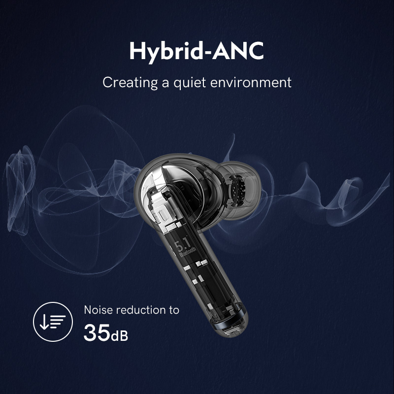With hybrid-ANC technology, the embedded forward and backward microphones help collect noises from both environment and ear canal.