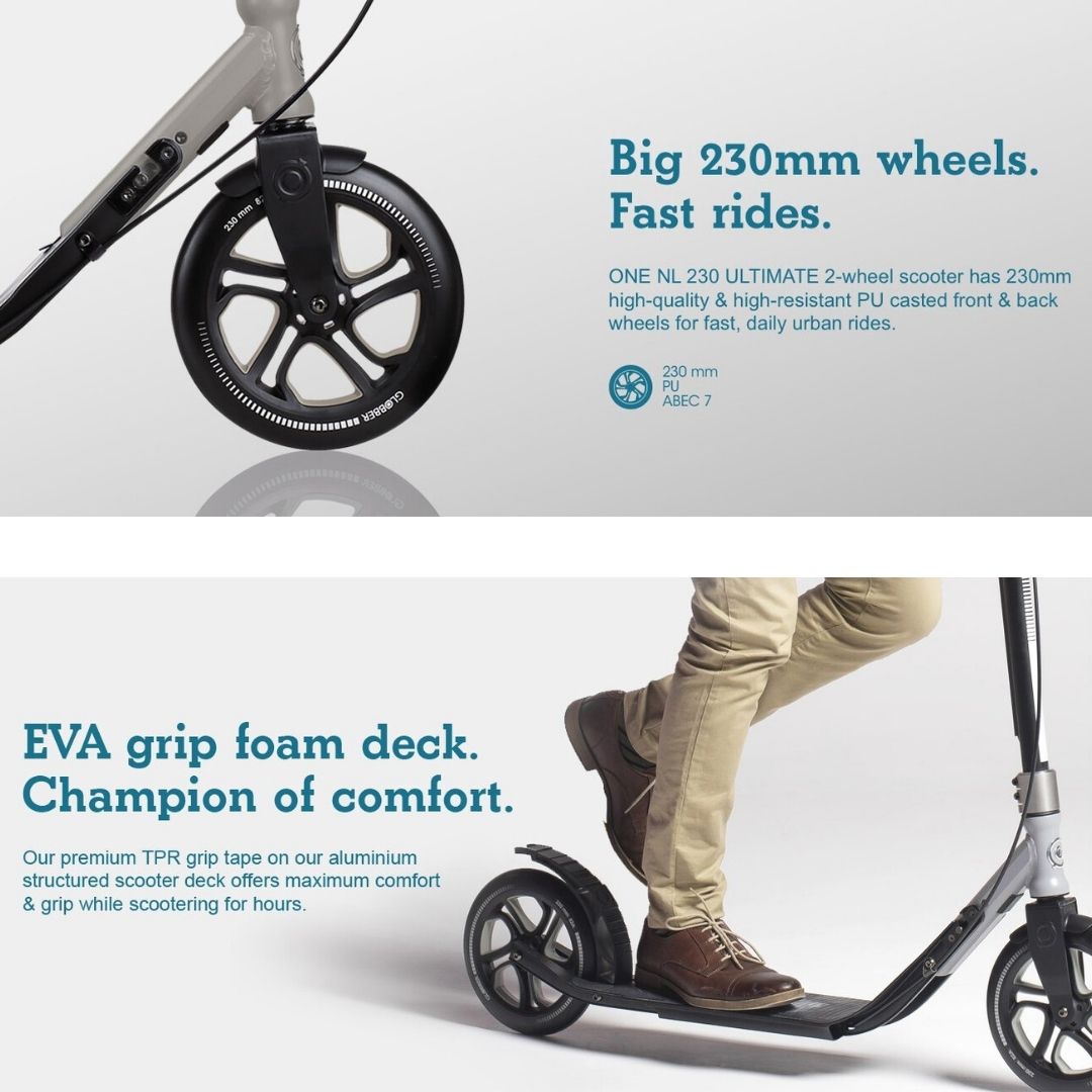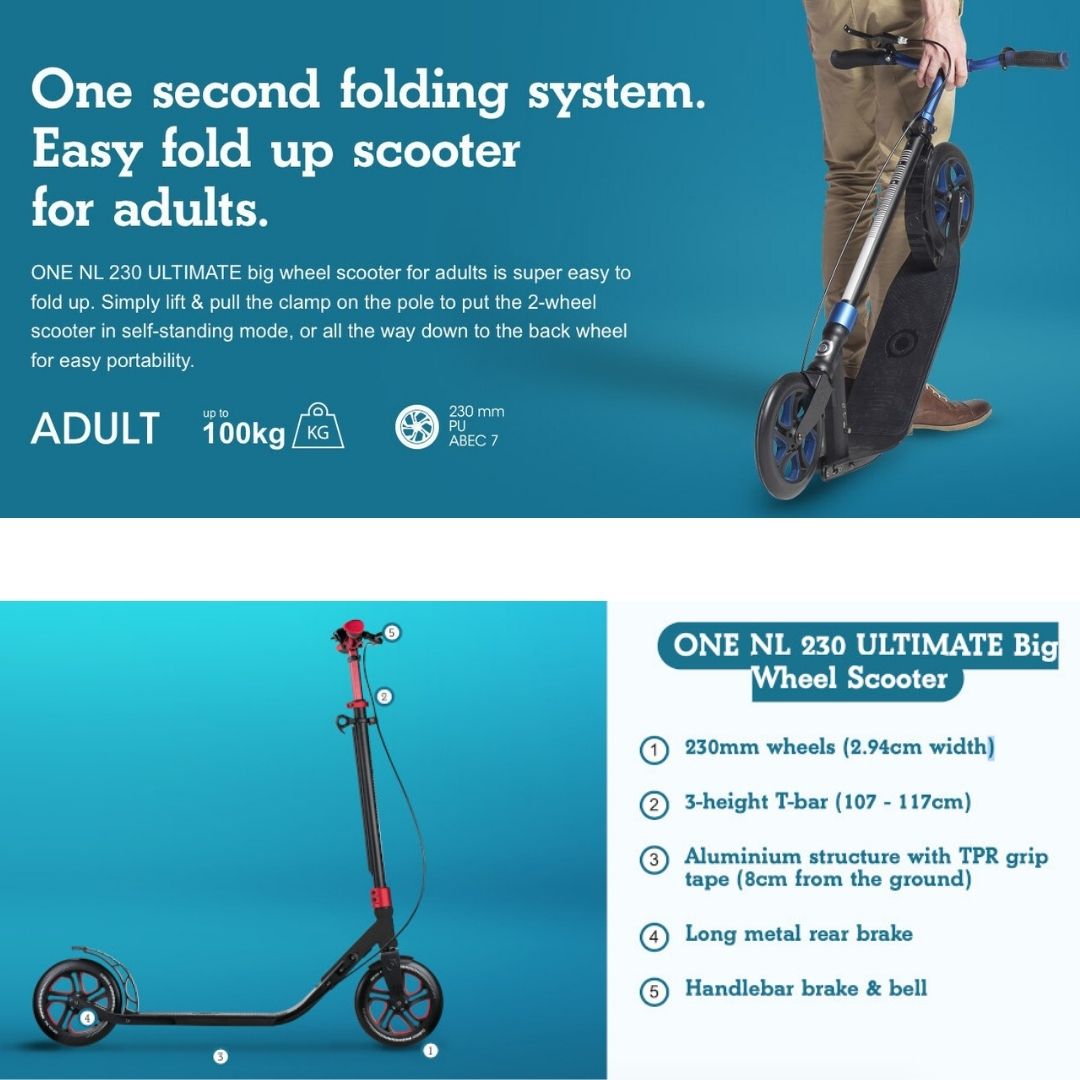 Globber One NL230 Ultimate Big Wheels Adult Kick Scooter with Handbrake & Bell