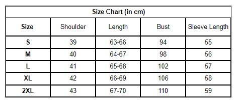 | Size | Shoulder | Length | Bust | Sleeve Length |