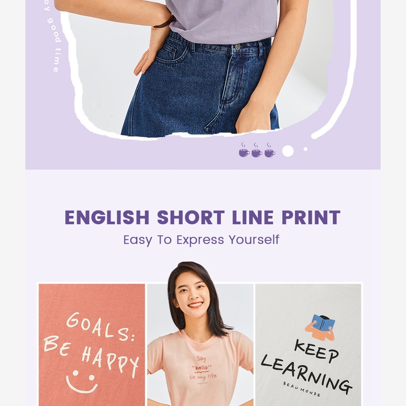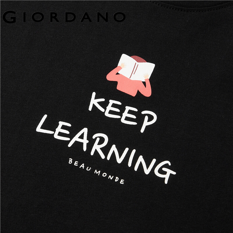GIORDANO Women T-Shirts Short Sleeve Comfy 100% Cotton Casual T-Shirts Letter Print Ribbed Crewneck Simple T-Shirts 13392202