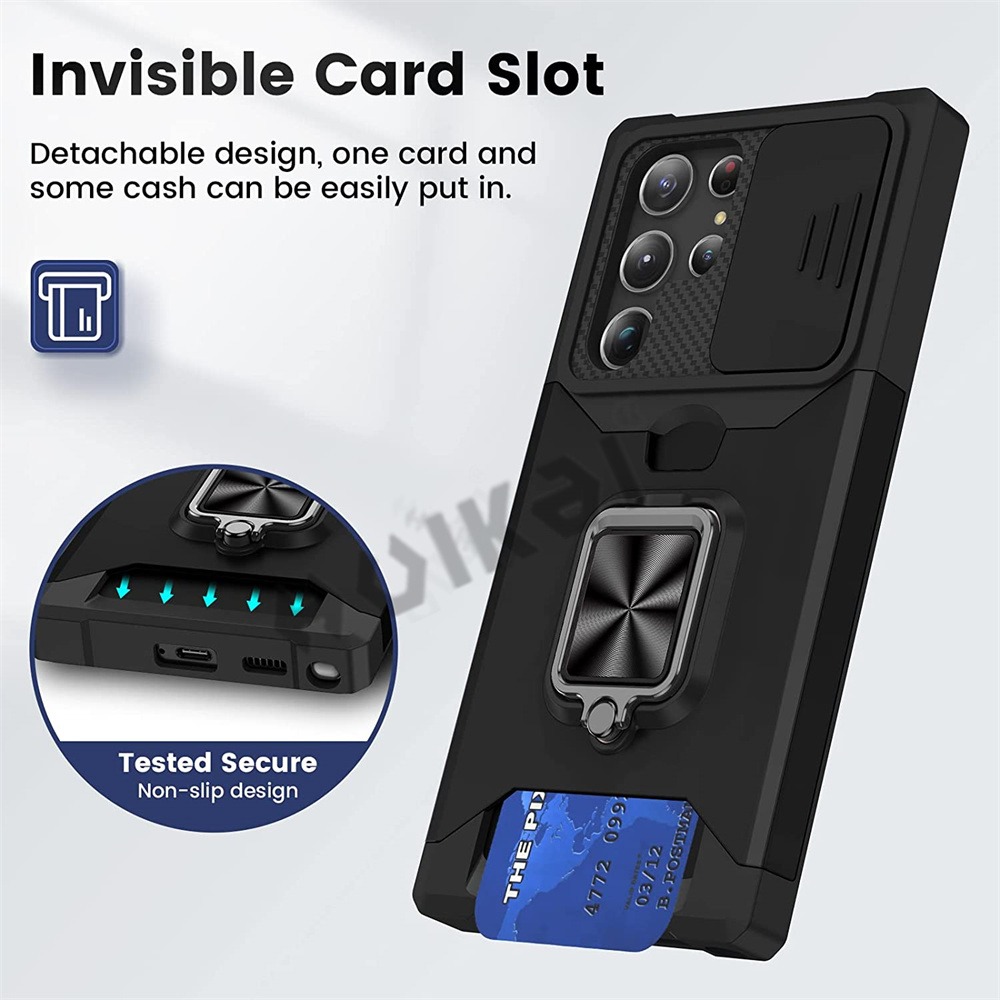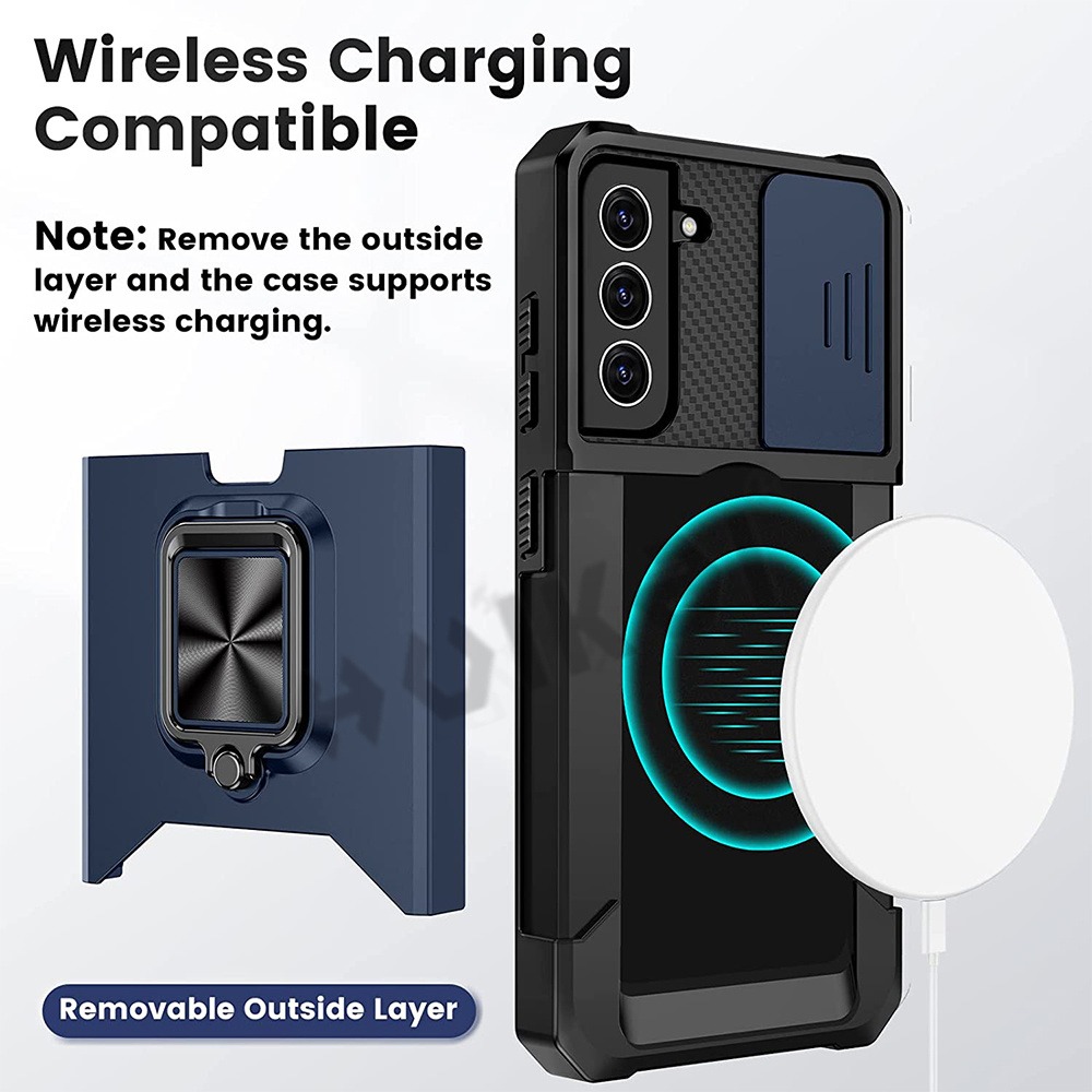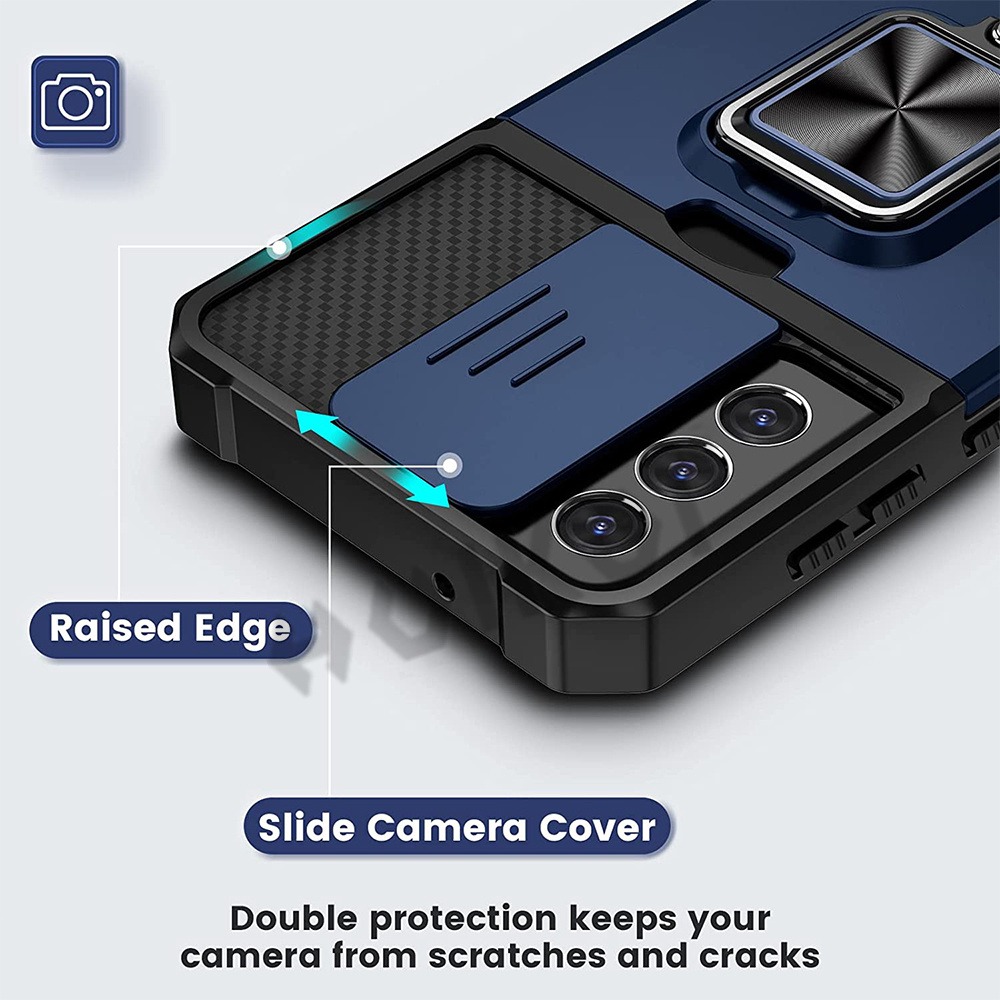 [SG] Samsung Galaxy S22 5G / S22+ 5G | S22 Plus 5G / S22 Ultra 5G / S21 FE 5G / S21 Fan Edition 5G Case - Sliding Camera Protector Shockproof Hybrid Armor with Magnetic Ring Kickstand Cover Casing