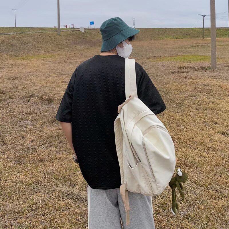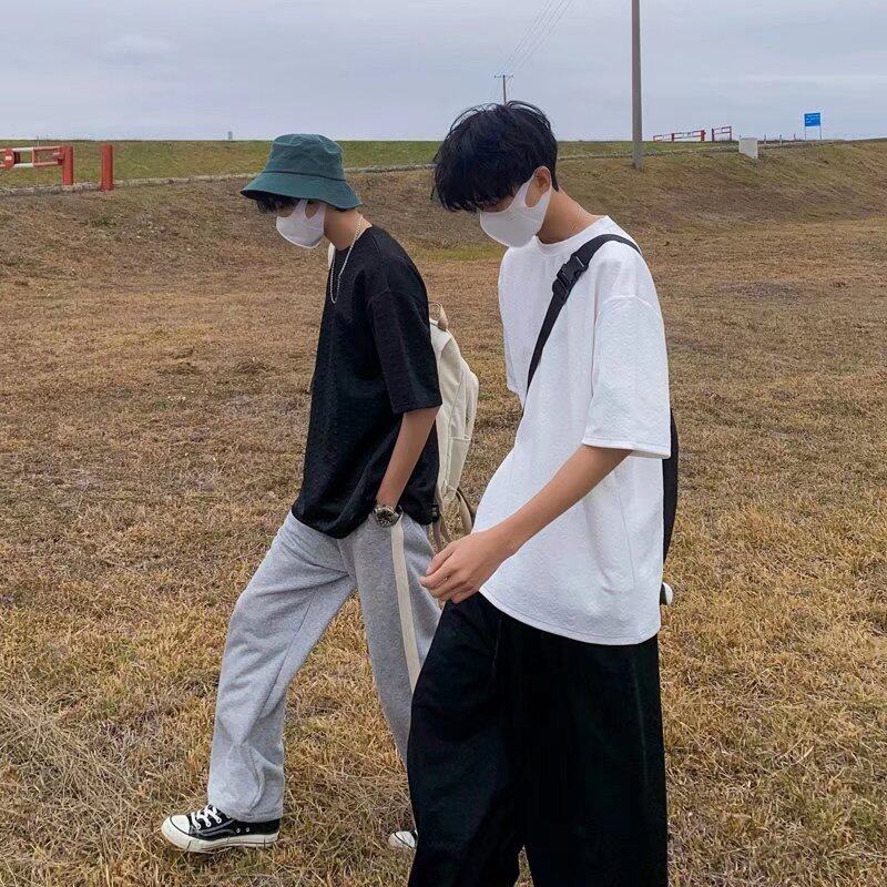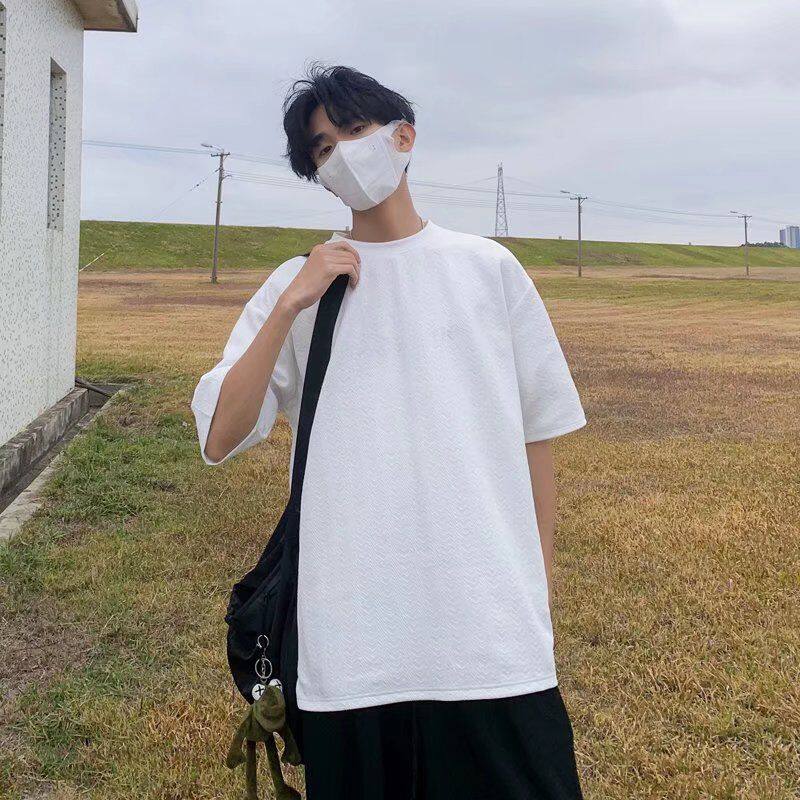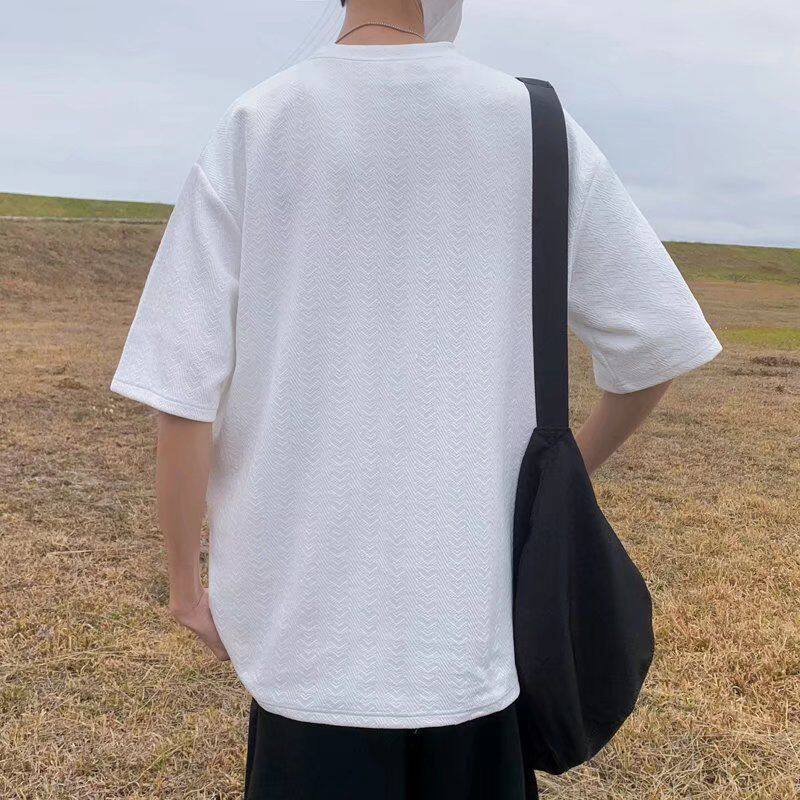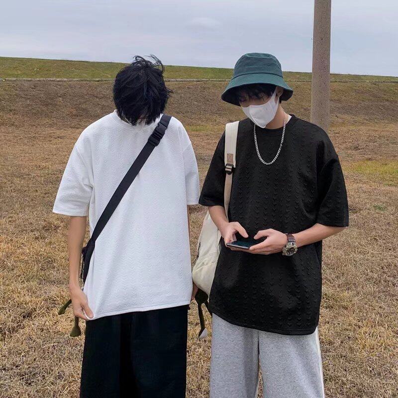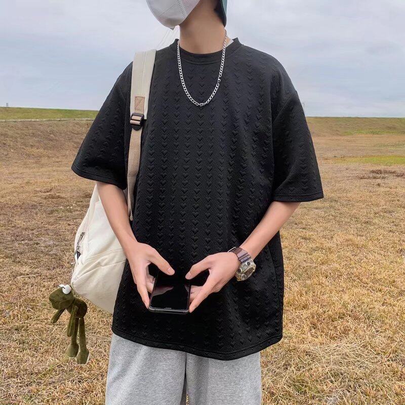 Waffle t shirt Men 2022 New Korean Style Oversize Plain Fashion Tops Loose Casual t-shirt