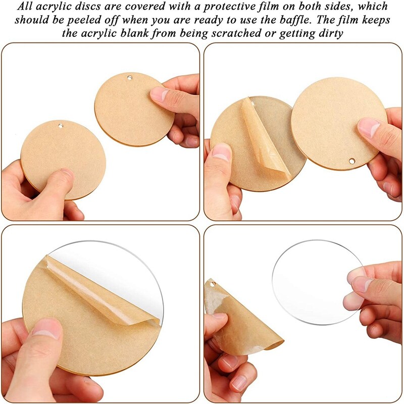 Double protective layer - both sides of the acrylic keychain blank circle discs are covered with protective film, which protect the acrylic blank from being scratched or getting dirty, just tear off it slowly, you can get a clear appearance transparent circle disc, which make your DIY project looks great