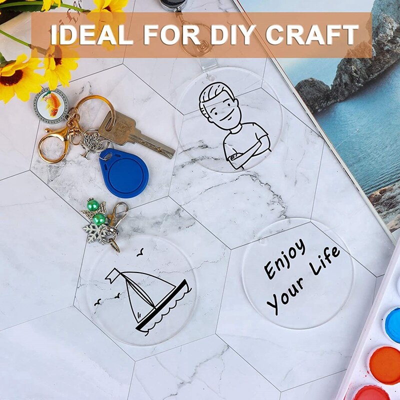Clear and smooth - Round keychain blanks with fine cutting, the edges are well polished, which provide the accurate sizes and smooth edges acrylic blank discs for you, great for your daily DIY projects and artwork