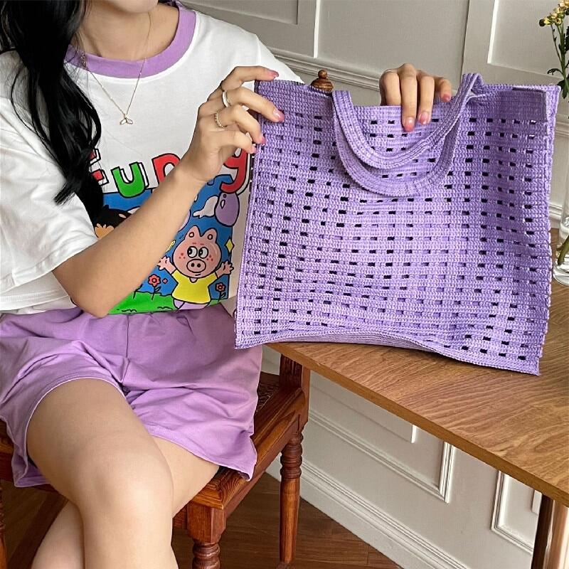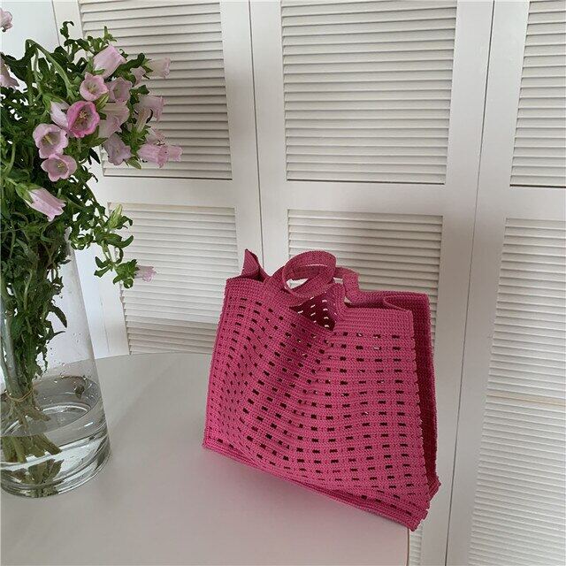 Casual Hollow Knitted Large Tote Bag Crochet Women Handbags Handmade Woven Summer Beach Bags Big Shopper Purses 2022 Female Bag