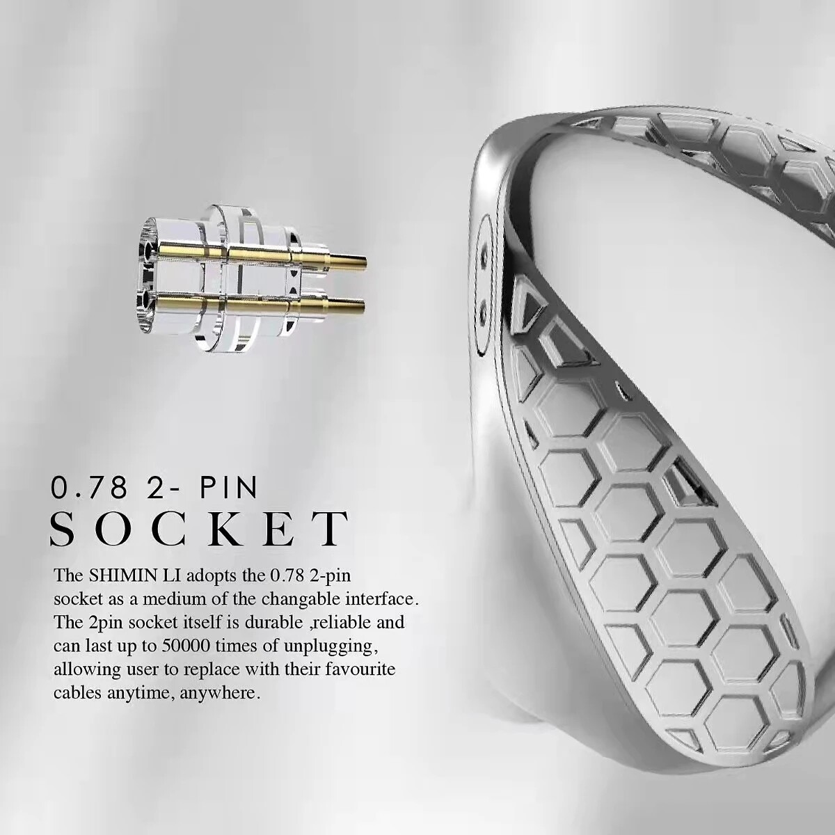 The shimin li adopts the 0.78 2pin socket as a medium of the changable interface. The 2pin socket itself is durable ,reliable and can last user to replace with their favourite cables anytime,anywhere