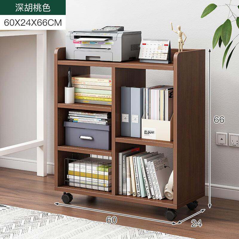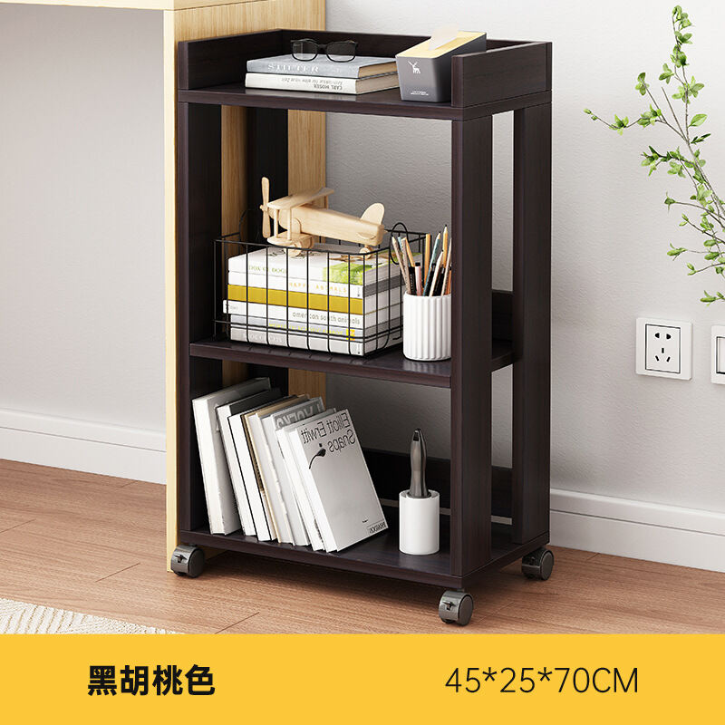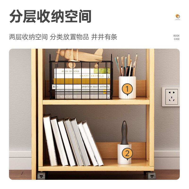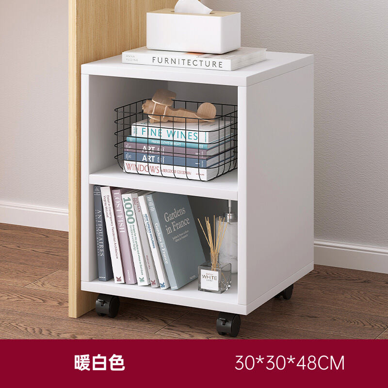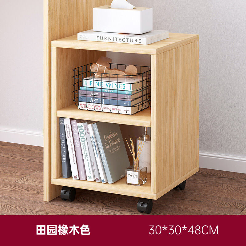 Desk Side Small Bookshelf Movable with Wheels Table Side Storage Cabinet Floor Simple Small Bookcase Short