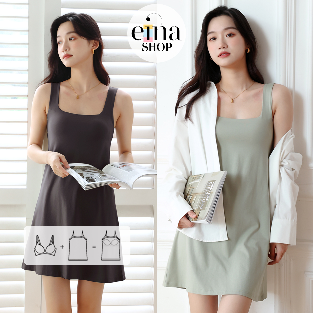 Einashop Vesta Bra Padded Dress SG Ship