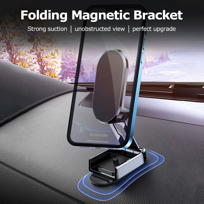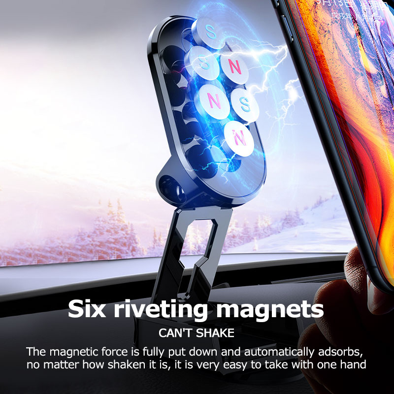 2022 New Strong Magnetic Car Phone Holder Folding Metal Phone Mount Rotatable Mini Stand For Phone Metal Strong Magnet GPS Car Mount