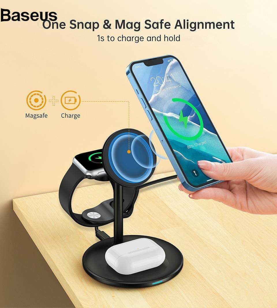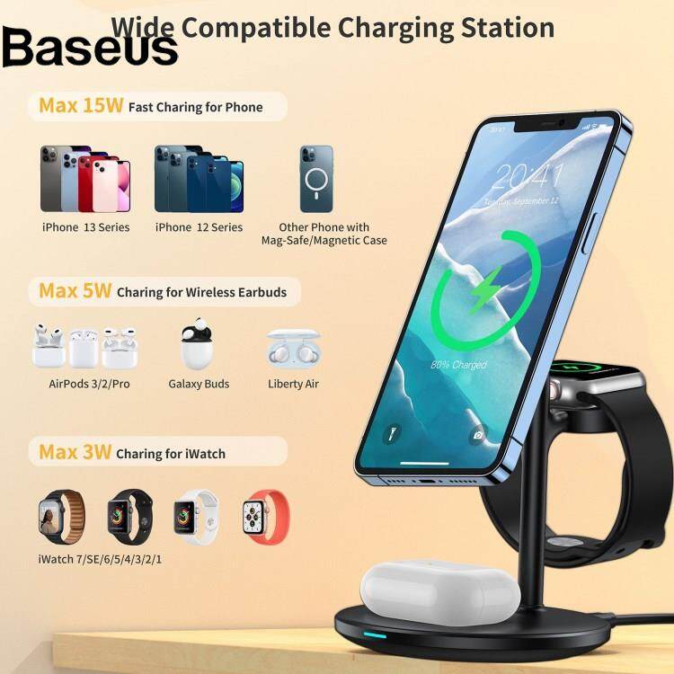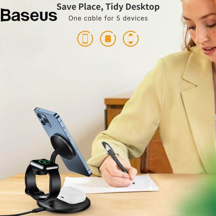 Baseus CHOETECH T585-F Desktop Stand 3 in 1 15W Max Charging Dock Magnetic Wireless Charger for Mobile Phone / Watch / Headset