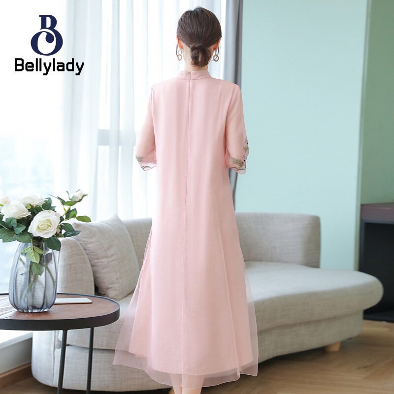 BellyLady Women Summer Embroidered Dress Chinese Ethnic Style Half Sleeves A-line Skirt Large Size Loose Dress