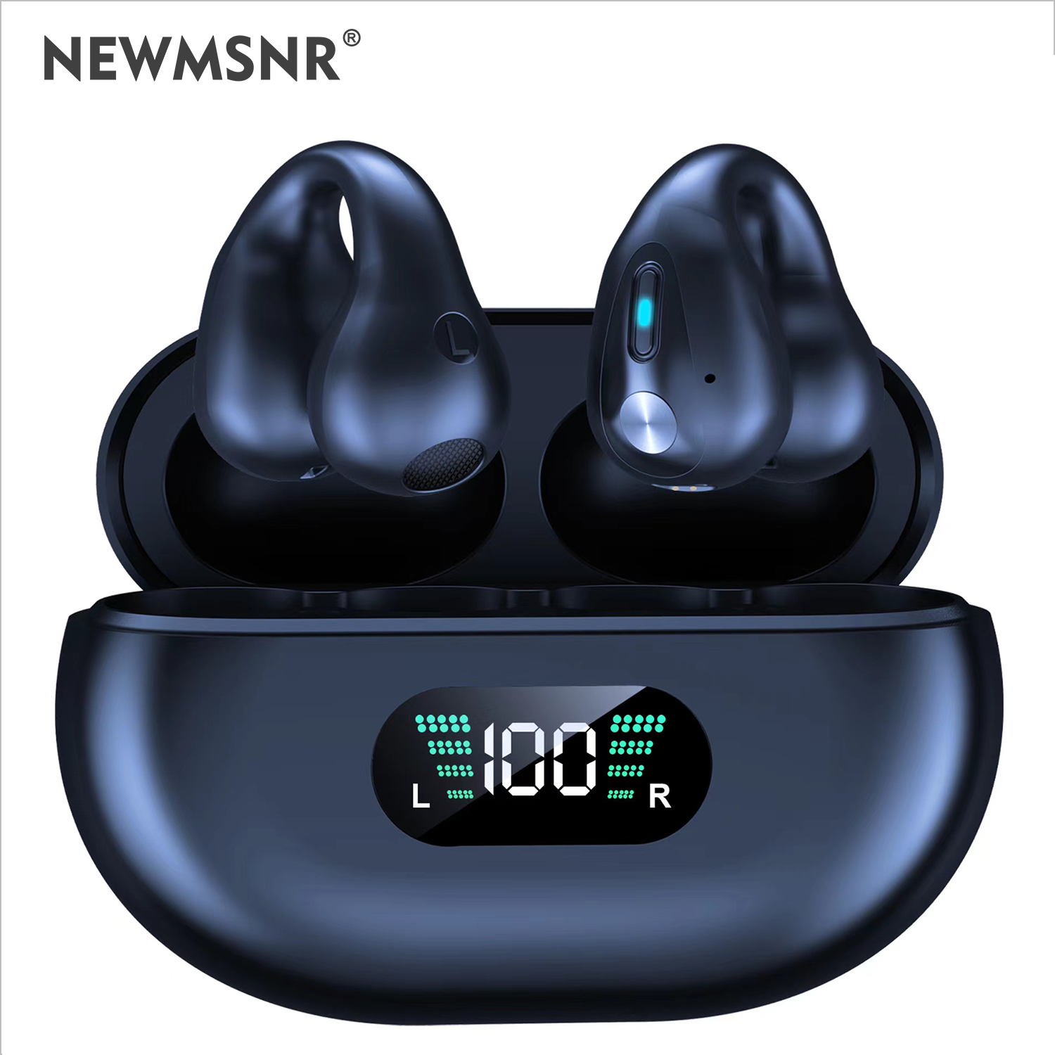 Newmsnr TWS Bluetooth 5.3 Wireless Earphones With HD Mic Super Bass Bone Conduction Bluetooth Earphone Earclip Design In Ear Headphones Touch Control Headphone LED Earbuds Waterproof Sports Headset