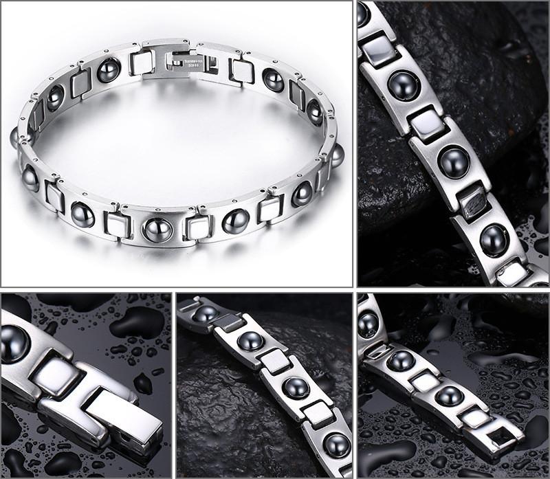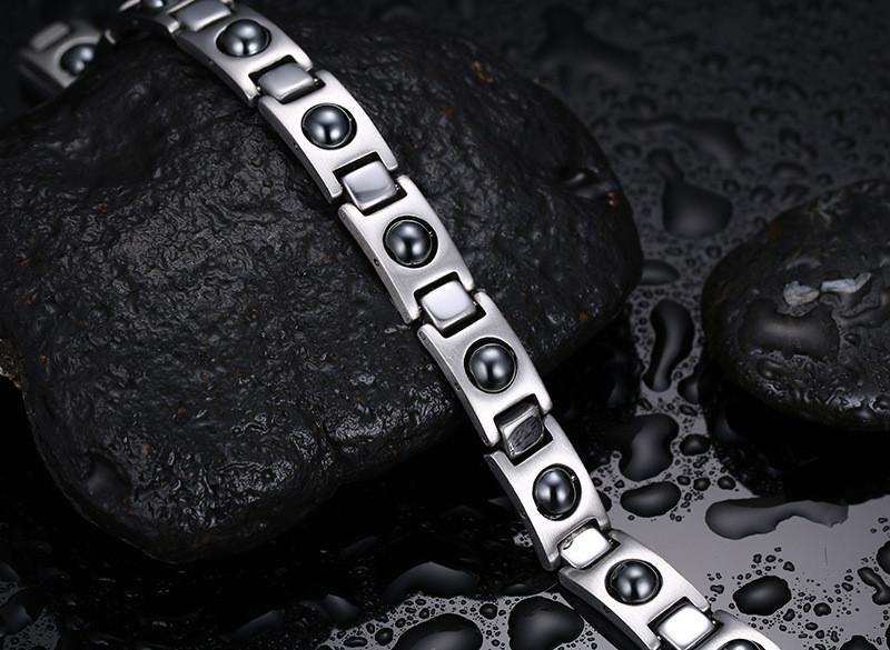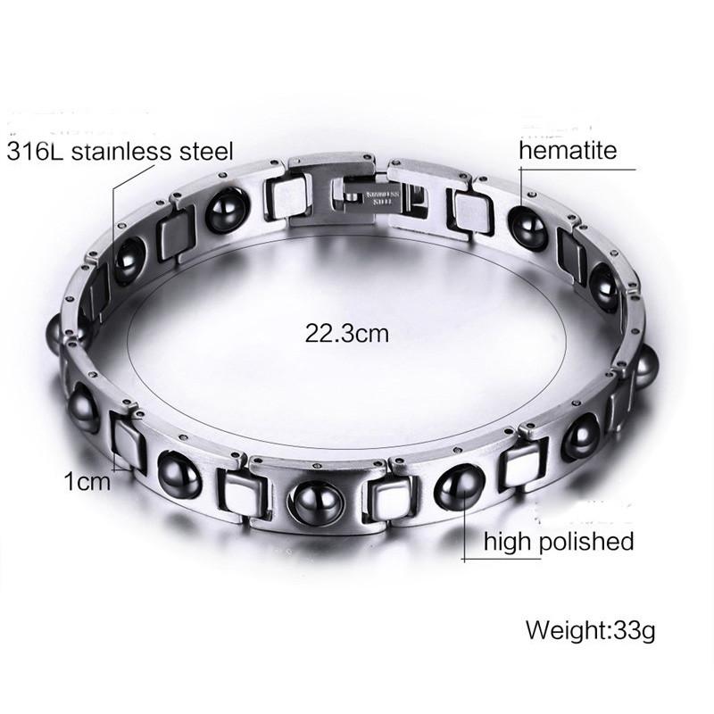 Refined Titanium Steel Energy Therapy Bracelet with Strong Black Magnets Germanium Health Care Bangles Chain