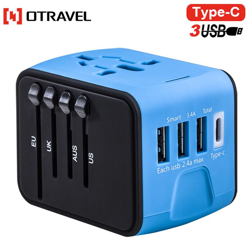 [SG Seller] [ORIGINAL] OTRAVEL International Power Adapter Travel Plug Adapter with High Speed 3 USB and Type-C for UK,US,AU,Europe,Asia All in One for iPhone, Android, All USB Devices