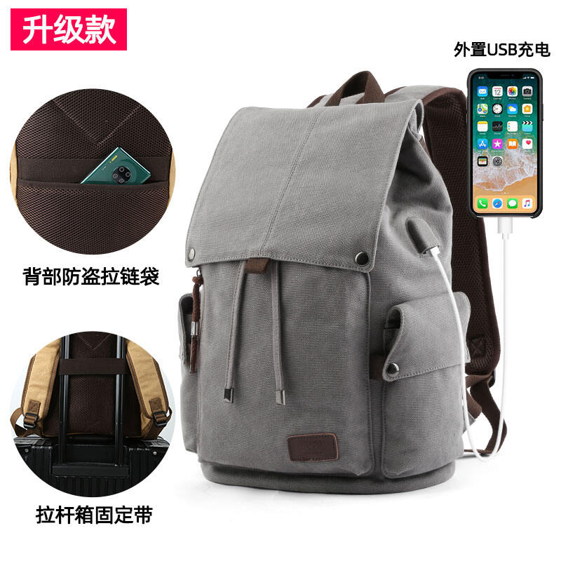 Korean Style Retro Canvas Men's Bag Casual Backpack Men's Travel Backpack Trendy Middle School Student Schoolbag Computer Bag Men