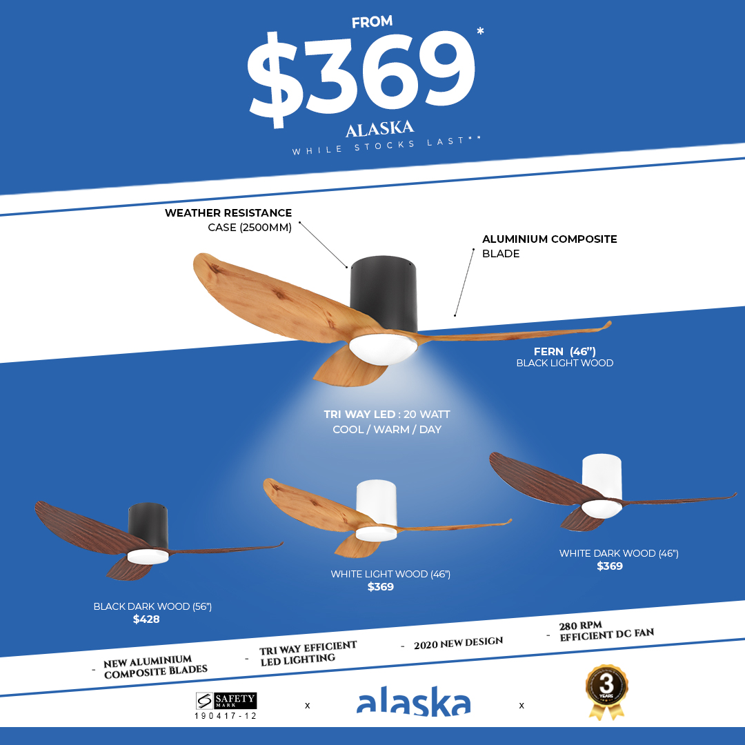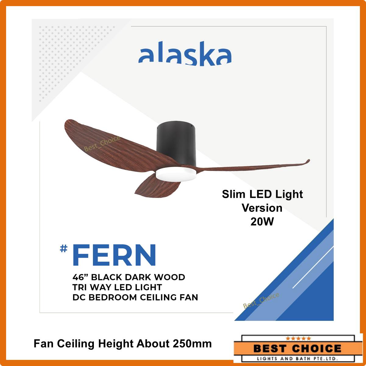 Alaska Fern II ceiling fan 46/56inches Hugger series DC with 20W LED lights Slim Version-Suitable low ceiling