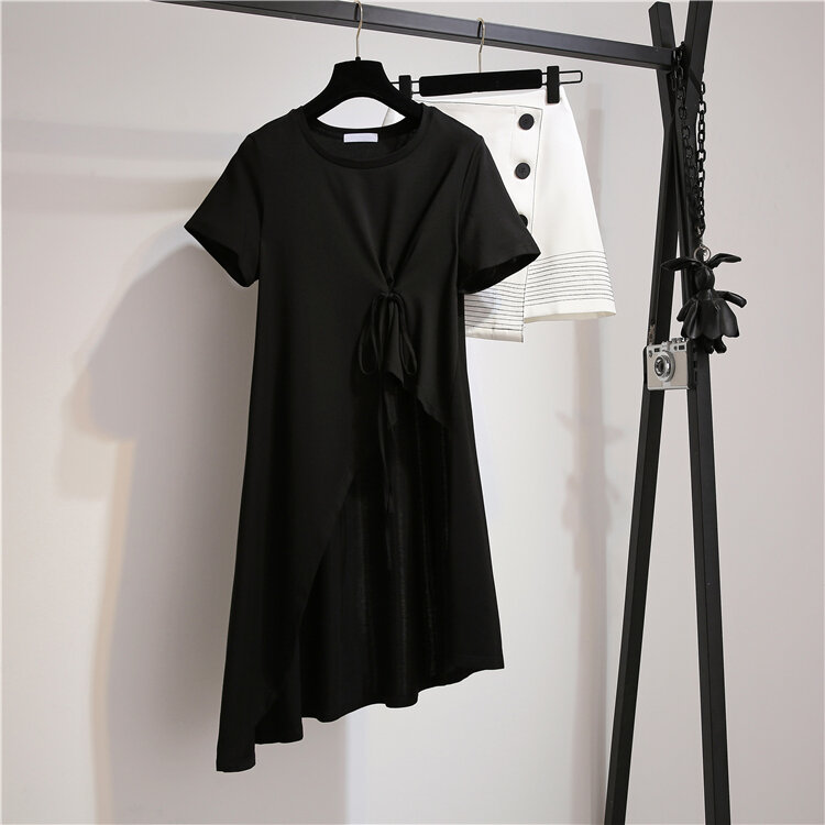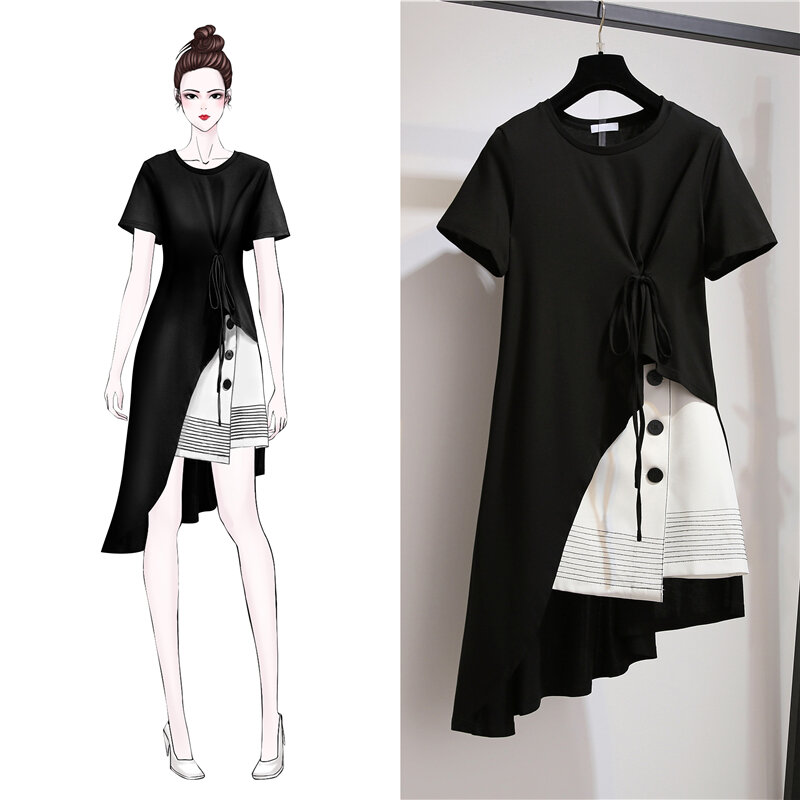 Good Goods Discount Store Shopping Mall Withdraw Cabinet Large Size Women's Summer Dress Thick Waist Belly Covering Women's Fat Hiding Dress Western Style Short Dress