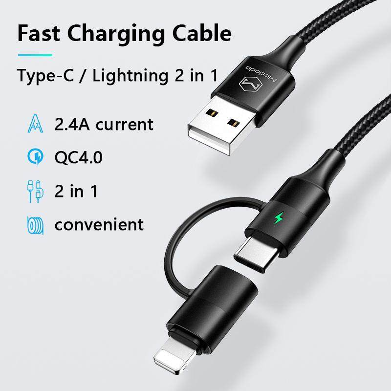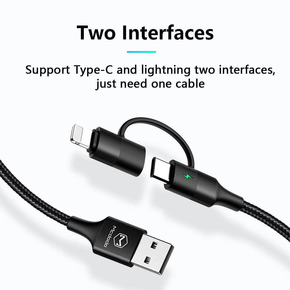 Mcdodo 2 in 1 For Android Type-C +For iPhone lightning Cable For iPhone X 8 7 Plus XR XMAX Fast Charging Cable For Samsung S9+ S8 huawei Mate 20 Pro P30 Pro For Xiaomi 9