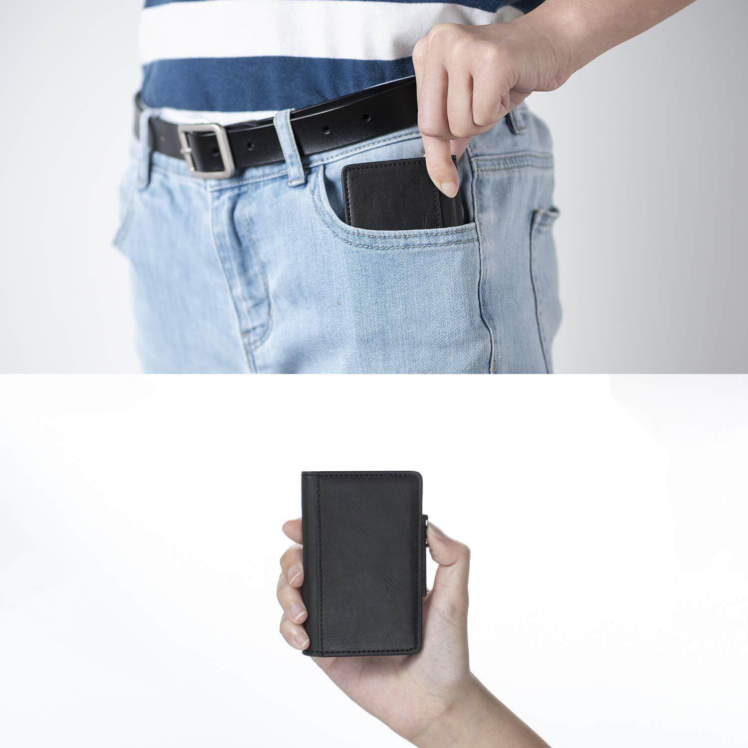 Smart Wallet RFID Blocking Men Credit Card Holder Anti Theft Card Holder for Men Wallets PU Leather Automatic Mini Slim Card Case Aluminum Metal Purse