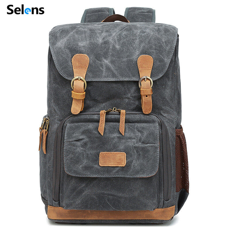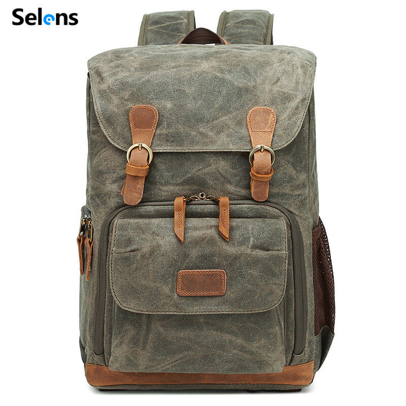 Selens Vintage Large Backpack SLR Camera Bag Waterproof Canvas 15 inch Laptop Photo Bag For Cannon Nikon Fuji Camera