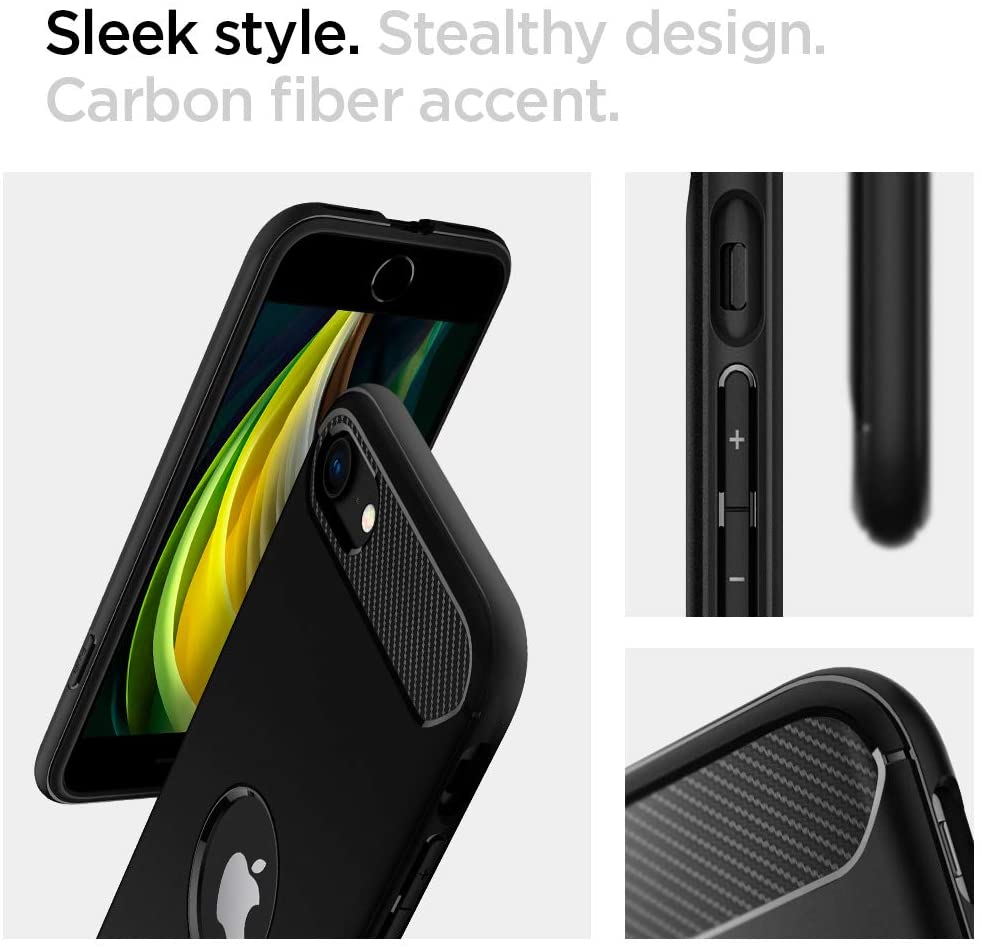 Spigen iPhone SE (2022 / 2020) Case Rugged Armor iPhone SE 3rd / 2nd Gen Casing Mil-Grade Protection Car Inspired Design Cover
