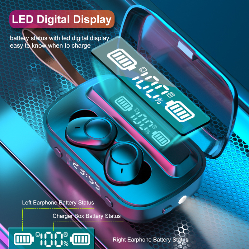 3). Multifunctional design, it not just two earphones, charger box integrated with flashlight, time display clock, meet your different daily needs.